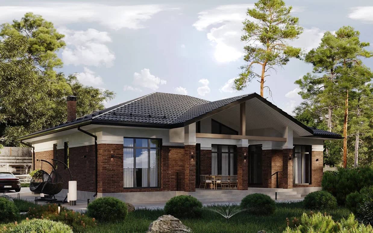 Рабочая зона просторной кухни-столовой выполнена без привычных навесных шкафов. Такой прием позволяет сильно облегчить интерьер.
