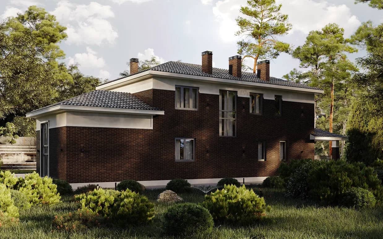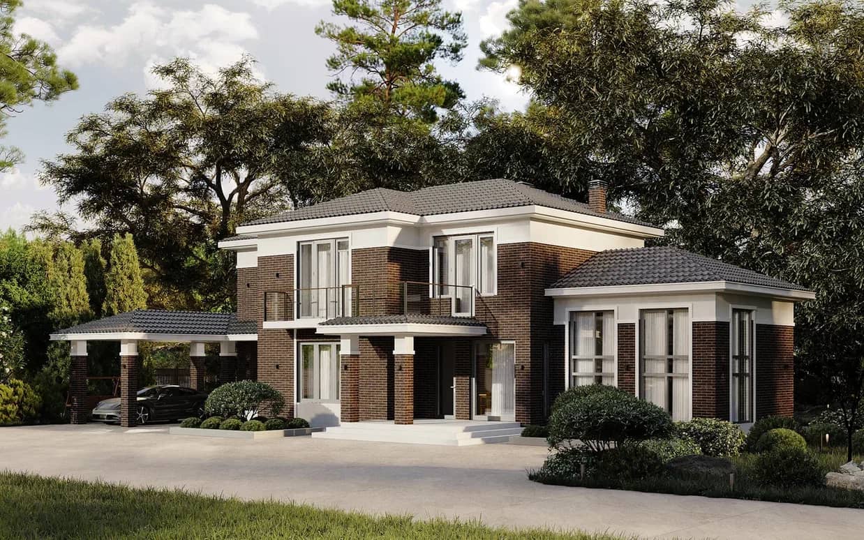 Двухэтажный кирпичный дом для большой семьи и щедрых приемов. Более 255 м² и навес для трех автомобилей.